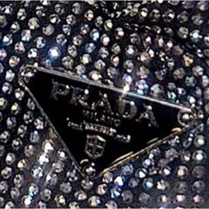 Add elegance with this Prada hair accessory. Features sparkling crystals and iconic logo.