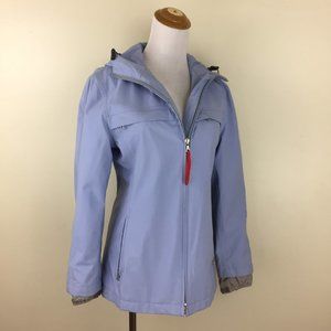 PRADA Italy Blue Gray Lining Zipper Pockets Logo Hardware Hooded Rain Jacket