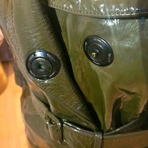 PRADA Italy Rare Women's Olive Green Genuine Patent Leather Coat w Belt Sz 38/S