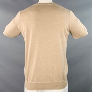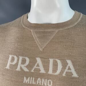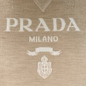 PRADA L Beige Cream Logo Cashmere Wool Jersey Short Sleeve Crew Neck Pullover