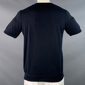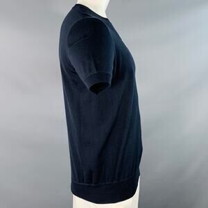 PRADA L Navy White Logo Cashmere Wool Jersey Short Sleeve Crew Neck Pullover
