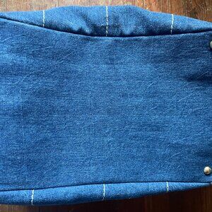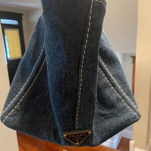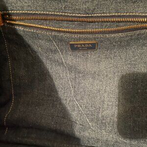 LARGE DENIM PRADA CANAPA TOTE WITH INTERIOR ZIP POCKETS AND TONS OF ROOM.