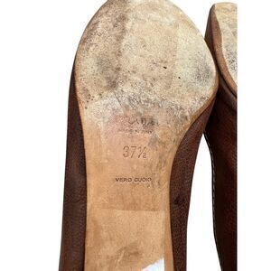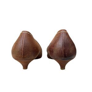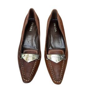 PRADA LEATHER KITTEN HEEL LOAFER PUMP BROWN SIZE 7, EURO 37.5