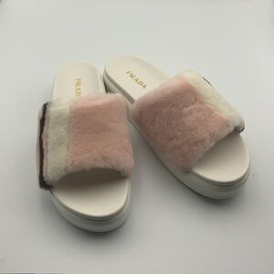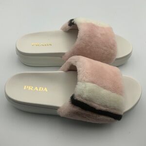 PRADA LOGO “ORCHIDEA“ REAL FUR SLIPPERS
