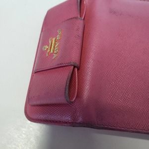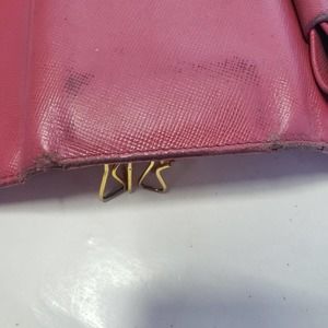 PRADA Leather Logo Wallet Small Pink Saffiano Compact Key Case Hooks Holder Bow