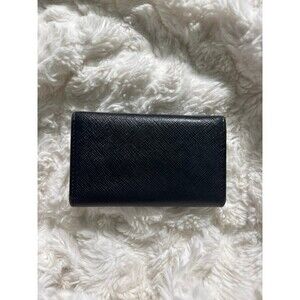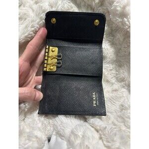 PRADA Leather Logo Wallet Small black Saffiano Compact Key Case Hooks Holder Bow