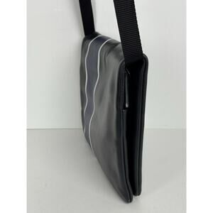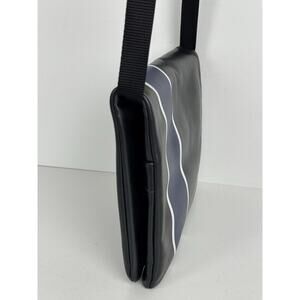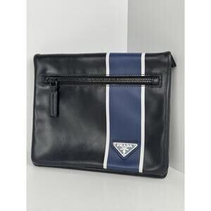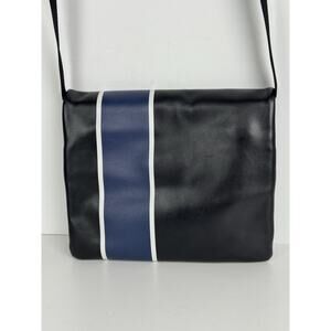 PRADA Leather Messenger Crossbody Bag Black with Blue and White Stripe R-1