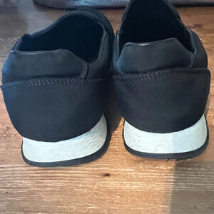 PRADA Linea Rossa Slip On Sneakers Black Nylon Tech Fabric Slide Ons. Size 37.5 is approx size 7.5. Rubber Sole, Leather Trim. Style# 5947. Good condition, please see photos. (Photo 1 is Stock Photo)