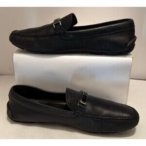 PRADA Saffiano Leather Drivinh Loafer Slipper Shoes Black/Silver US 10 EU 43
