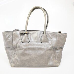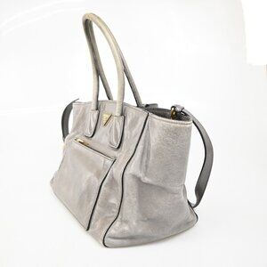 PRADA Logo 2 Way Shoulder Hand Bag Nylon Leather Gray GHW