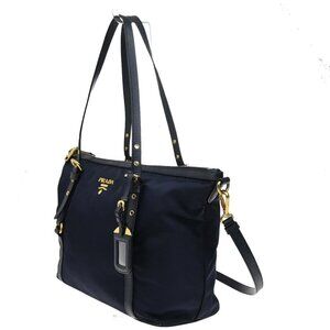 PRADA Logo 2Way Shoulder Hand Bag Nylon Leather Navy Blue GHW