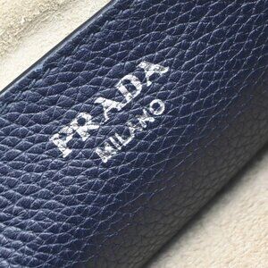 PRADA Logo Backpack Bag Vitello Daino Leather Navy Blue Silver Italy 667RF606