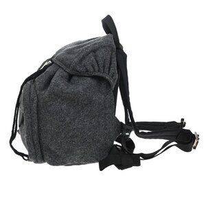 PRADA Logo Drawstring Backpack Bag Wool Leather Gray Black SHW Italy 86KB115