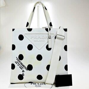 PRADA Logo For ISETAN 2021 Shoulder Tote Bag Canvas Leather White Italy