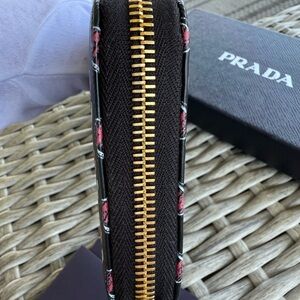 A pre-owned. PRADA Logo Heart Vitello Move Zip Around Long Wallet Black. The over all is like New, barely used. Mint Condition. The item is sold in AS IS condition. Please check the photos for more details.