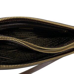 PRADA Logo Jacquard - Khaki Dark Brown Jacquard Leather Shoulder Bag 684-081625