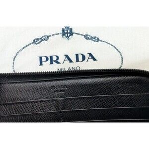 The PRADA Logo Plate Nylon Zip Around Long Wallet in black is a stylish and functional accessory for women. Made of durable nylon material, this wallet features a solid black color with the iconic PRADA logo accents. The zip-around style and credit card slots make it convenient for everyday use, while the Italian craftsmanship adds a touch of luxury to this chic accessory. Perfect for those who appreciate both fashion and practicality in their wallet, this wallet is a must-have for any woman's accessory collection.
