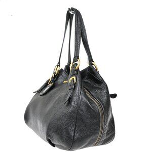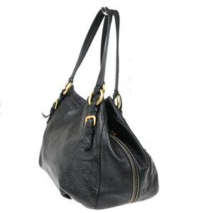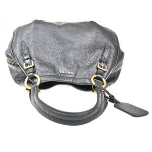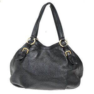 PRADA Logo Shoulder Bag Snap Closure Leather Black Gold Italy