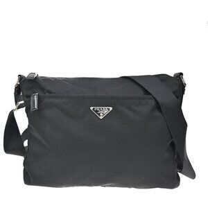 PRADA Logo Tessuto Crossbody Shoulder Bag Nylon Leather Black SHW Italy