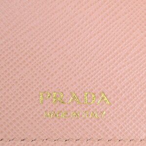 PRADA Logo Trifold Compact Wallet Saffiano Metal Leather Pink Beige 88FB246