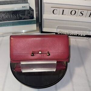 PRADA Long Wallet Ribbon Leather Hook Pink
