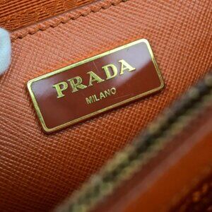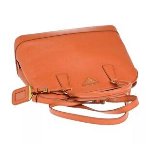 PRADA MILANO 2Way Shoulder Hand Bag Saffiano Leather Orange Gold Italy 99EB493