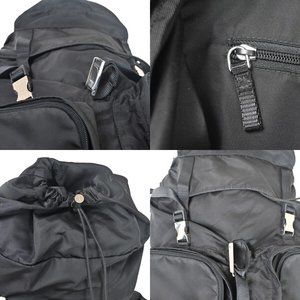 PRADA MILANO Logo Backpack Bag Nylon Leather Black Silver Made In Italy