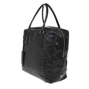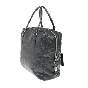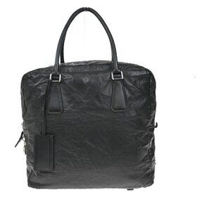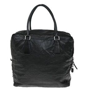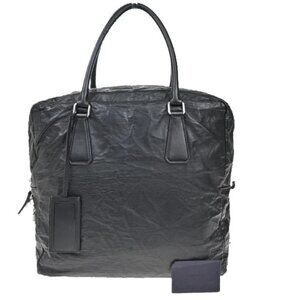 PRADA MILANO Logo Business Shoulder Hand Tote Bag Leather Black Sliver 76FC101
