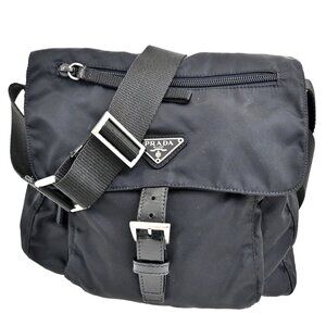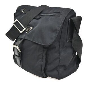 PRADA MILANO Logo Tessuto Prada Shoulder Bag Nylon Leather Black Italy
