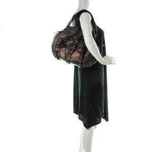PRADA Metallic Nappa Ruffle Hobo Grafite Mordore