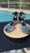 In great condition, pre-owned, however there is light peeling/ discoloration on the creasing leather upper, toe area, light marks/ tiny dent on the heels, please see pictures and feel free to ask questions or make offers