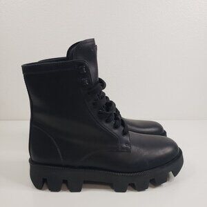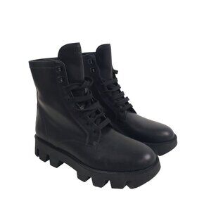 PRADA Mid-Calf Leather Lace-Up Combat boots in Black - Size 41 (US 11)