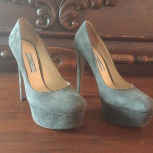 PRADA Milano Gray Suede Platform Pumps 36.5/6.5M