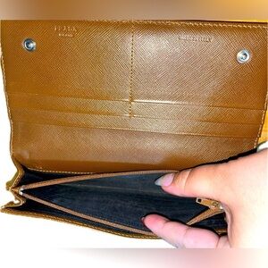 PRADA Milano Saffiano Long Leather & Nylon Fold Wallet, Brown/Copper, Italy