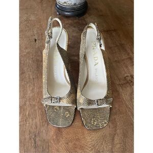 PRADA Milano Vero Cuoio Authentic Genuine Leather peep toe sling back heels Size