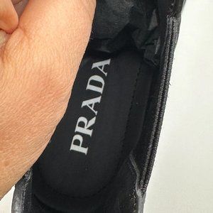 PRADA Monolith Brushed Leather Lug Sole Pull On Chelsea Ankle Boots Black