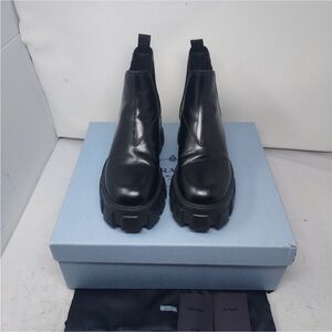 PRADA Monolith Leather Black Lug Platform Chelsea Boot size 39