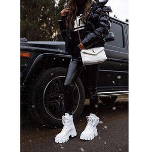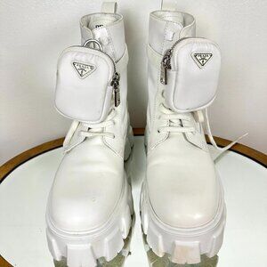 PRADA Monolith Mini Bag Lug Sole Combat Boot in Bianco Size EU 40 / US 10