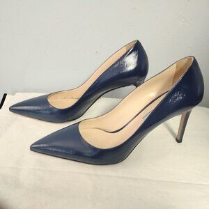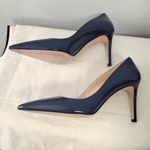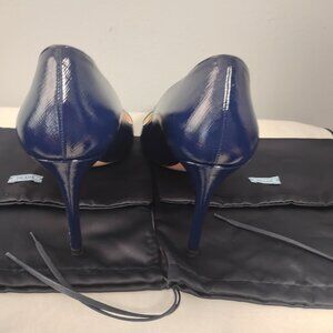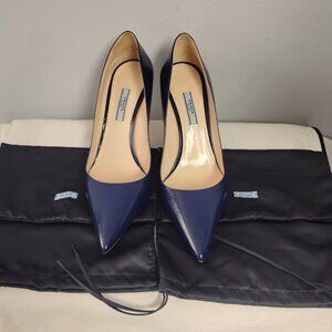 ❤️PRADA NAVY BLUE SAFFIANO VERNICE LEATHER Stiletto Pumps Shoes +2 Prada Dustbags