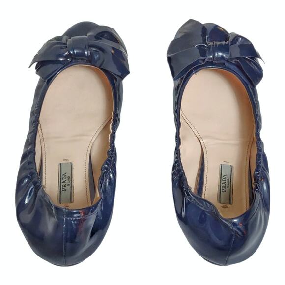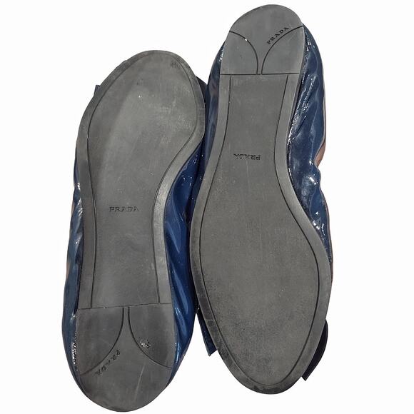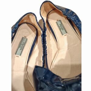 PRADA Navy Ballet Flats EU Size 35.5 Bows Elasticized Patent Leather US Size 8.5