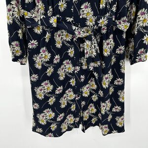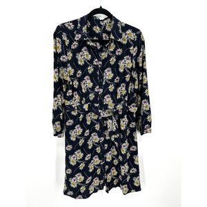 Style: 100% Silk Daisy Print Button Up Long Sleeve Waist Tie Mini Dress
