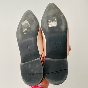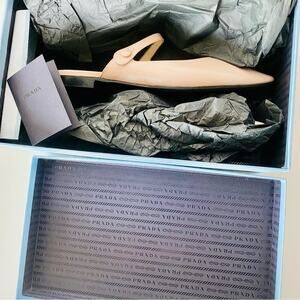 PRADA Nude Cream Beige Patent Leather Strap Pointed Toe Flats Slip On Slides 38