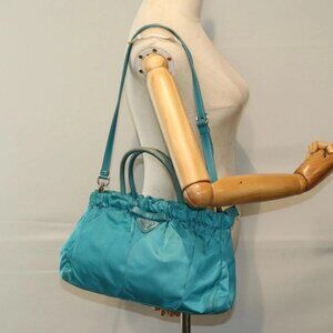 PRADA Nylon 2 Way Hand Bag Turquoise Blue Auth 80110