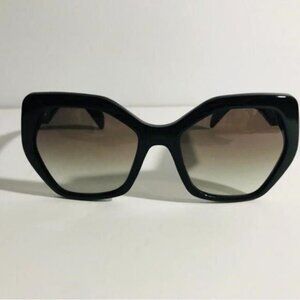 PRADA PR 16RS HERITAGE  Frame Color: 1AB0A7 Black Lens Color: Grey Gradient Polarized Lens: No Lens Material: plastic Prescription Capable: Yes Frame Shape: Irregular Frame Material: Plastic Frame Type: Full Rim Gender: Women's  Lens Width: 56 Bridge Width: 19 Arm Length: 135 Lens Height: 50