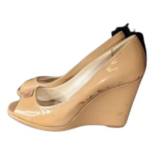 PRADA Patent Leather Peep Toe Wedges in Beige/Nude | EU 38 / US 8 | 3KZ037