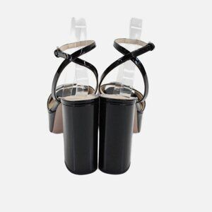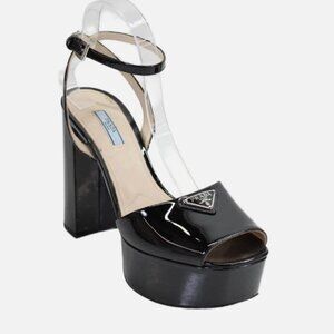 PRADA Patent Leather Triangle Logo Platform Sandals Ankle Strap Heels Pumps