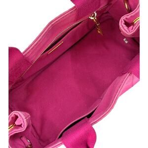 description: Prada pink canvas bag. condition The product shows signs of leather use (scuffs and wear) on the interior and exterior throughout. body - with scuffs and scratches. interior - Free of dirt and leather damage except for minor signs of use. corners - Shows wear and leather discoloration. bottom - Scuffs and stud scratches. handles and straps - with minor scuffs. Made in Italy / with cereal inside. bag measurements may vary by 1-3 cm due to the location, method, material and design of the bag. please be careful not to use liquids containing alcoholic chemicals, such as perfume or hand sanitizer, as they may deteriorate the leather. vigorous scrubbing of the bag with leather cleaners can remove the dye, even if the bag is not dyed, so please avoid using cleaners as much as possible. regardless of whether the pendant leather is dyed or not, please be aware that it may become sticky when stored in hot and humid places, such as in a hot car in summer or near heating appliances in winter. due to the nature of pendant leather, it may become dyed if it is left in contact with other products for a long time, so be sure to store it individually in a dust bag. Please note that Elabutique is not responsible for any damage caused by improper care.