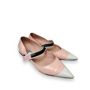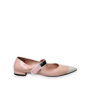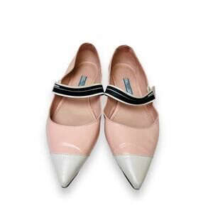 PRADA Pink Patent Leather Cap Toe Pointed Strap Closure Mary Jane Flats 37.5