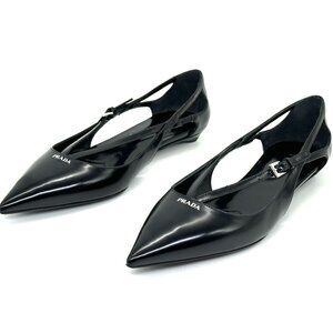 PRADA Pointed Toe Cutout Cut Out Strappy Leather Ballerina Ballet Flats