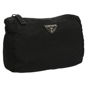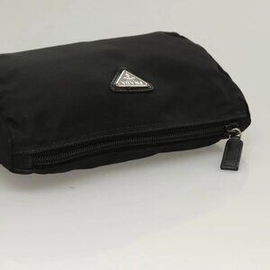 PRADA Pouch Nylon Black Silver Auth SW1056